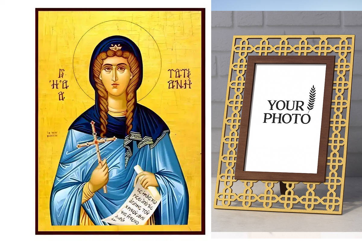Βασικά Χαρακτηριστικά: - Σχέδιο: Κλασική βυζαντινή εικονογραφία με ζωηρό κόκκινο περίγραμμα - Υλικό: Ξύλο Μασίφ Φλαμουρία υψηλής αντοχής με προστατευτικό βερνίκι για ποιότητα που διαρκεί - Προέλευση: Χειροποίητο στην Ελλάδα - Σκοπός: Ιδανικό για γωνιές προσευχής, εκκλησίες, διακόσμηση σπιτιού ή ως δώρο με νόημα Διαθέσιμα μεγέθη: 10x7 cm (3,9 x 2,8 ίντσες) 15x11 cm (5,9 x 4,3 ίντσες) 21x15 cm (8,3 x 5,9 ίντσες) 26x20 cm (10,2 x 7,9 ίντσες) 40x30 cm (15,8 x 11,8 ίντσες) 45x35 cm (17,7 x 13,8 ίντσες) 50x40 cm (19,7 x 15,8 ίντσες)► Εικόνα της Αγίας  Τατιανής, ξύλινη.  Χειροποίητη ξύλινη εικόνα, ειδικής επεξεργασίας σε σκληρό Φλαμουριά Ξύλο Εικόνα Ορθόδοξης τέχνης, σκαλισμένη ή τυπωμένη σε ξύλο φλαμουριάς υψηλής ποιότητας. Η φυσική απαλότητα και ομοιομορφία του ξύλου τονίζει κάθε λεπτομέρεια του εικονίσματος, αναδεικνύοντας τη βαθιά πνευματικότητα και την ιερότητα της παράδοσης. Ιδανική για οικιακό εικονοστάσι, δώρο βάπτισης, γάμου ή αφιέρωμα σε ναό. Το ξύλο έχει υποστεί ειδική επεξεργασί