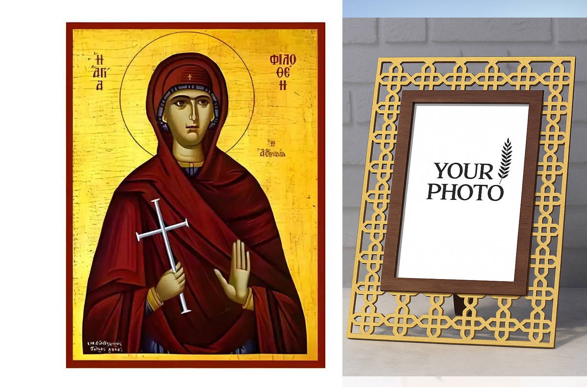Βασικά Χαρακτηριστικά: - Σχέδιο: Κλασική βυζαντινή εικονογραφία με ζωηρό κόκκινο περίγραμμα - Υλικό: Ξύλο Μασίφ Φλαμουρία υψηλής αντοχής με προστατευτικό βερνίκι για ποιότητα που διαρκεί - Προέλευση: Χειροποίητο στην Ελλάδα - Σκοπός: Ιδανικό για γωνιές προσευχής, εκκλησίες, διακόσμηση σπιτιού ή ως δώρο με νόημα Διαθέσιμα μεγέθη: 10x7 cm (3,9 x 2,8 ίντσες) 15x11 cm (5,9 x 4,3 ίντσες) 21x15 cm (8,3 x 5,9 ίντσες) 26x20 cm (10,2 x 7,9 ίντσες) 40x30 cm (15,8 x 11,8 ίντσες) 45x35 cm (17,7 x 13,8 ίντσες) 50x40 cm (19,7 x 15,8 ίντσες)► Εικόνα της Αγίας Φιλοθέης, ξύλινη.  Χειροποίητη ξύλινη εικόνα, ειδικής επεξεργασίας  σε σκληρό Φλαμουριά Ξύλο Εικόνα Ορθόδοξης τέχνης, σκαλισμένη ή τυπωμένη σε ξύλο φλαμουριάς υψηλής ποιότητας. Η φυσική απαλότητα και ομοιομορφία του ξύλου τονίζει κάθε λεπτομέρεια του εικονίσματος, αναδεικνύοντας τη βαθιά πνευματικότητα και την ιερότητα της παράδοσης. Ιδανική για οικιακό εικονοστάσι, δώρο βάπτισης, γάμου ή αφιέρωμα σε ναό. Το ξύλο έχει υποστεί ειδική επεξεργασί