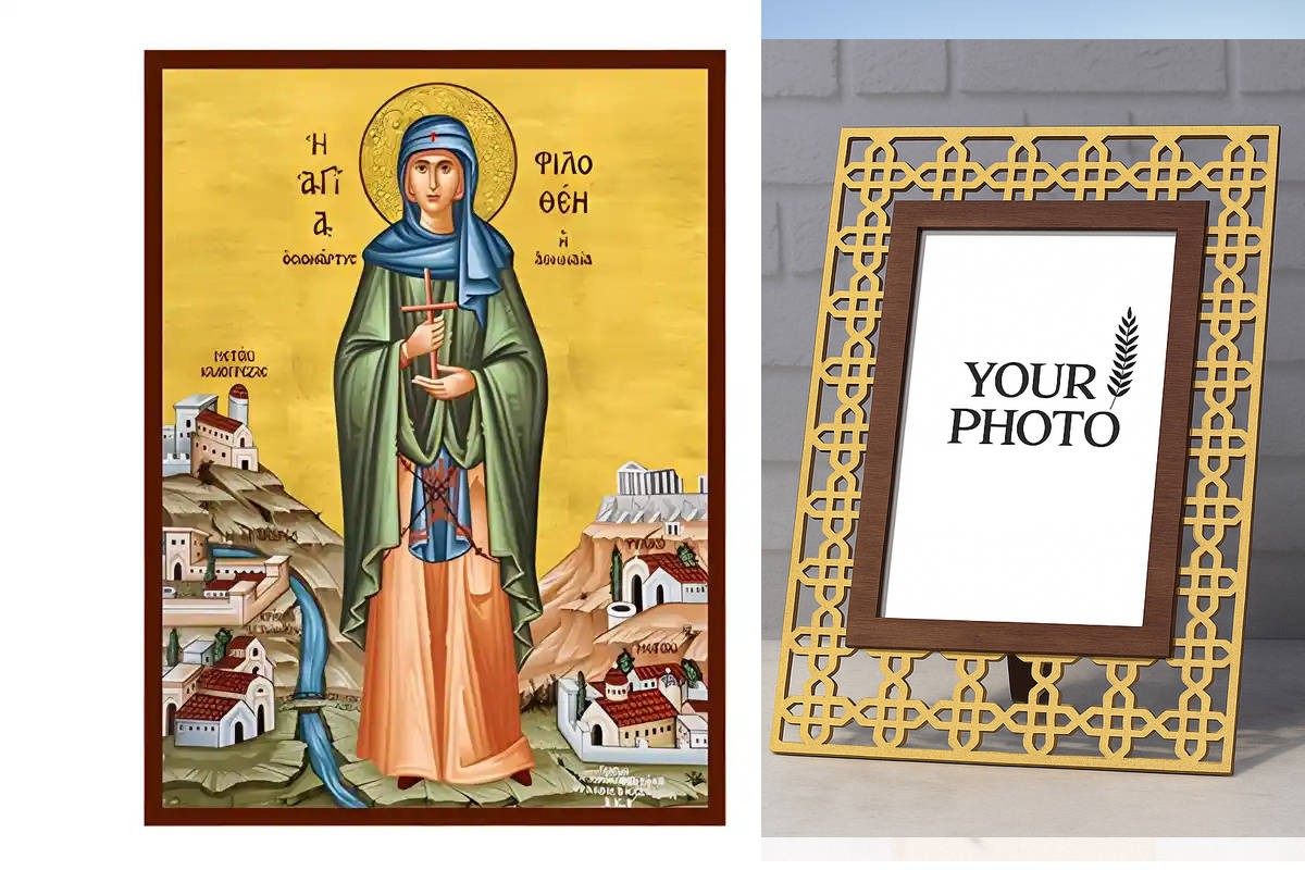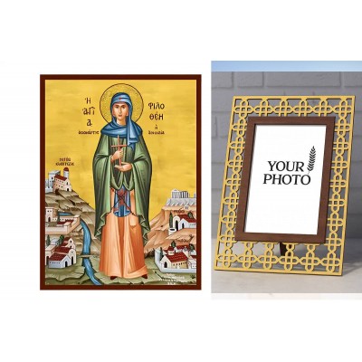 Βασικά Χαρακτηριστικά: - Σχέδιο: Κλασική βυζαντινή εικονογραφία με ζωηρό κόκκινο περίγραμμα - Υλικό: Ξύλο Μασίφ Φλαμουρία υψηλής αντοχής με προστατευτικό βερνίκι για ποιότητα που διαρκεί - Προέλευση: Χειροποίητο στην Ελλάδα - Σκοπός: Ιδανικό για γωνιές προσευχής, εκκλησίες, διακόσμηση σπιτιού ή ως δώρο με νόημα Διαθέσιμα μεγέθη: 10x7 cm (3,9 x 2,8 ίντσες) 15x11 cm (5,9 x 4,3 ίντσες) 21x15 cm (8,3 x 5,9 ίντσες) 26x20 cm (10,2 x 7,9 ίντσες) 40x30 cm (15,8 x 11,8 ίντσες) 45x35 cm (17,7 x 13,8 ίντσες) 50x40 cm (19,7 x 15,8 ίντσες)► Εικόνα της Αγίας Φιλοθέης, ξύλινη.  Χειροποίητη ξύλινη εικόνα, ειδικής επεξεργασίας  σε σκληρό Φλαμουριά Ξύλο Εικόνα Ορθόδοξης τέχνης, σκαλισμένη ή τυπωμένη σε ξύλο φλαμουριάς υψηλής ποιότητας. Η φυσική απαλότητα και ομοιομορφία του ξύλου τονίζει κάθε λεπτομέρεια του εικονίσματος, αναδεικνύοντας τη βαθιά πνευματικότητα και την ιερότητα της παράδοσης. Ιδανική για οικιακό εικονοστάσι, δώρο βάπτισης, γάμου ή αφιέρωμα σε ναό. Το ξύλο έχει υποστεί ειδική επεξεργασί