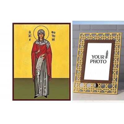 Βασικά Χαρακτηριστικά: - Σχέδιο: Κλασική βυζαντινή εικονογραφία με ζωηρό κόκκινο περίγραμμα - Υλικό: Ξύλο Μασίφ Φλαμουρία υψηλής αντοχής με προστατευτικό βερνίκι για ποιότητα που διαρκεί - Προέλευση: Χειροποίητο στην Ελλάδα - Σκοπός: Ιδανικό για γωνιές προσευχής, εκκλησίες, διακόσμηση σπιτιού ή ως δώρο με νόημα Διαθέσιμα μεγέθη: 10x7 cm (3,9 x 2,8 ίντσες) 15x11 cm (5,9 x 4,3 ίντσες) 21x15 cm (8,3 x 5,9 ίντσες) 26x20 cm (10,2 x 7,9 ίντσες) 40x30 cm (15,8 x 11,8 ίντσες) 45x35 cm (17,7 x 13,8 ίντσες) 50x40 cm (19,7 x 15,8 ίντσες)► Εικόνα της Αγίας Φωτεινής , ξύλινη.  Χειροποίητη ξύλινη εικόνα, ειδικής επεξεργασίας σε σκληρό Φλαμουριά Ξύλο Εικόνα Ορθόδοξης τέχνης, σκαλισμένη ή τυπωμένη σε ξύλο φλαμουριάς υψηλής ποιότητας. Η φυσική απαλότητα και ομοιομορφία του ξύλου τονίζει κάθε λεπτομέρεια του εικονίσματος, αναδεικνύοντας τη βαθιά πνευματικότητα και την ιερότητα της παράδοσης. Ιδανική για οικιακό εικονοστάσι, δώρο βάπτισης, γάμου ή αφιέρωμα σε ναό. Το ξύλο έχει υποστεί ειδική επεξεργασί
