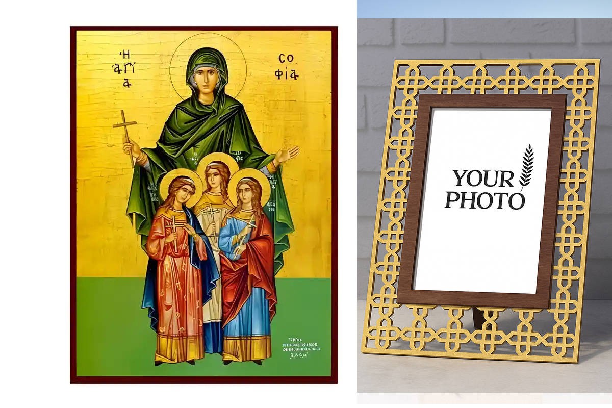 Βασικά Χαρακτηριστικά: - Σχέδιο: Κλασική βυζαντινή εικονογραφία με ζωηρό κόκκινο περίγραμμα - Υλικό: Ξύλο Μασίφ Φλαμουρία υψηλής αντοχής με προστατευτικό βερνίκι για ποιότητα που διαρκεί - Προέλευση: Χειροποίητο στην Ελλάδα - Σκοπός: Ιδανικό για γωνιές προσευχής, εκκλησίες, διακόσμηση σπιτιού ή ως δώρο με νόημα Διαθέσιμα μεγέθη: 10x7 cm (3,9 x 2,8 ίντσες) 15x11 cm (5,9 x 4,3 ίντσες) 21x15 cm (8,3 x 5,9 ίντσες) 26x20 cm (10,2 x 7,9 ίντσες) 40x30 cm (15,8 x 11,8 ίντσες) 45x35 cm (17,7 x 13,8 ίντσες) 50x40 cm (19,7 x 15,8 ίντσες)► Εικόνα της Αγίας Σοφίας και των Θυγατέρων της Πίστη, Ελπίδα και Αγάπη, ξύλινη.
