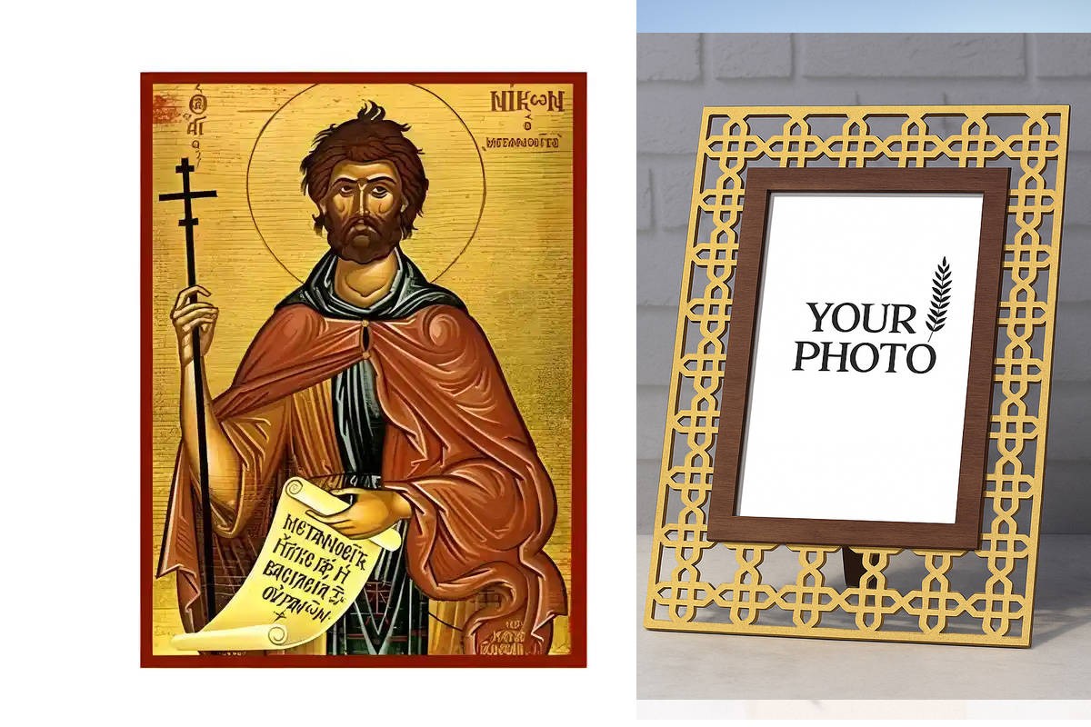 Βασικά Χαρακτηριστικά: - Σχέδιο: Κλασική βυζαντινή εικονογραφία με ζωηρό κόκκινο περίγραμμα - Υλικό: Ξύλο Μασίφ Φλαμουρία υψηλής αντοχής με προστατευτικό βερνίκι για ποιότητα που διαρκεί - Προέλευση: Χειροποίητο στην Ελλάδα - Σκοπός: Ιδανικό για γωνιές προσευχής, εκκλησίες, διακόσμηση σπιτιού ή ως δώρο με νόημα Διαθέσιμα μεγέθη: 10x7 cm (3,9 x 2,8 ίντσες) 15x11 cm (5,9 x 4,3 ίντσες) 21x15 cm (8,3 x 5,9 ίντσες) 26x20 cm (10,2 x 7,9 ίντσες) 40x30 cm (15,8 x 11,8 ίντσες) 45x35 cm (17,7 x 13,8 ίντσες) 50x40 cm (19,7 x 15,8 ίντσες)► Εικόνα του Αγίου Νίκωνος,