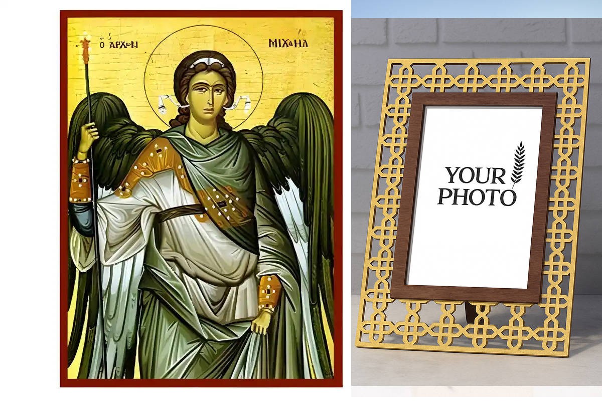 Σετ των 2 Εικόνα Ορθοδοξίας Πολυτελείας με σχεδιο Σταυρούς μαζι με Βάση σε 8 χρώματα με περίγραμμα χρυσό σε ξύλο Plywood (Πλακάζ) με βάση Εικόνα Αρχάγγελος Μιχαήλ Χειροποίητη Ελληνορθόδοξη , Κρεμαστή πλάκα βυζαντινής τέχνης, χριστιανική τέχνη Διάσταση 10x7 cm (3,9 x 2,8 ίντσες) INTRAEK3kadro3211-670429