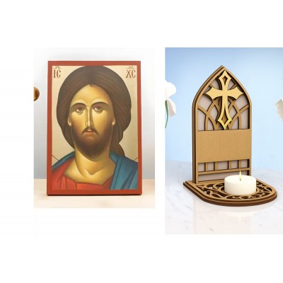 | Όνομα Προϊόντος | Σετ 2 τεμαχίων – Εικόνα Ορθοδοξίας Καντηλάκι σε 8 χρώματα με περίγραμμα χρυσό σε ξύλο Plywood (Πλακάζ) με βάση Πορτρέτο του Ιησού Χριστού, Ξύλινη Χειροποίητη Εικόνα με Φύλλο Χρυσού Τοίχου Ελληνικού Premium Βυζαντινού Στυλ Κρεμασμένο σε ξύλινη πλάκα Θρ |