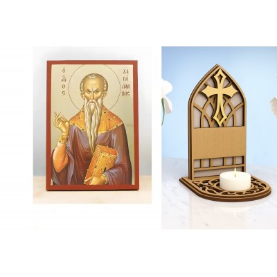 | Όνομα Προϊόντος | Σετ 2 τεμαχίων – Εικόνα Ορθοδοξίας Καντηλάκι σε 8 χρώματα με περίγραμμα χρυσό σε ξύλο Plywood (Πλακάζ) με βάση Άγιος Χαράλαμπος Μαγνησίας, Ξύλινη Χειροποίητη Εικόνα με Φύλλο Χρυσού Ελληνικού Premium Βυζαντινού Στυλ Κρεμαστό τοίχου Θρησκευτικό Θέμα Χει |