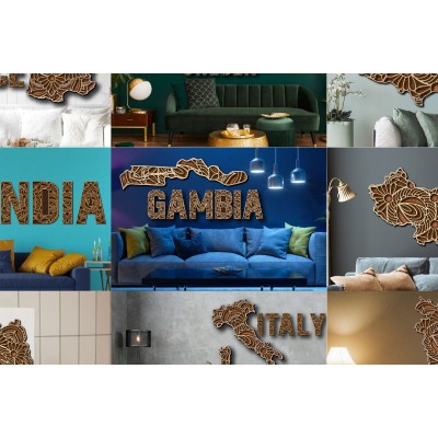 Όνομα Προϊόντος Σετ των 2 Intra απο ξύλο plywood 3mm-4mm πάχος – Εξατομικευμένη χάρτη 100 χωρών Δίασταση 20x20 cm INTRAFABR-24893104