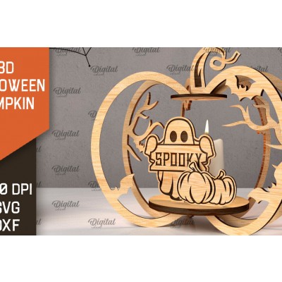 Σετ των 2 Intra απο ξύλο plywood 3mm-4mm πάχος Τρισδιάστατο σχέδιο αποκοπής λέιζερ κολοκύθας αποκριών Δίασταση 15x15 cm INTRAFABR-107013597