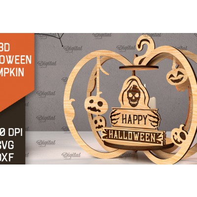 Σετ των 2 Intra απο ξύλο plywood 3mm-4mm πάχος Τρισδιάστατο σχέδιο αποκοπής λέιζερ κολοκύθας αποκριών Δίασταση 15x15 cm INTRAFABR-107013737