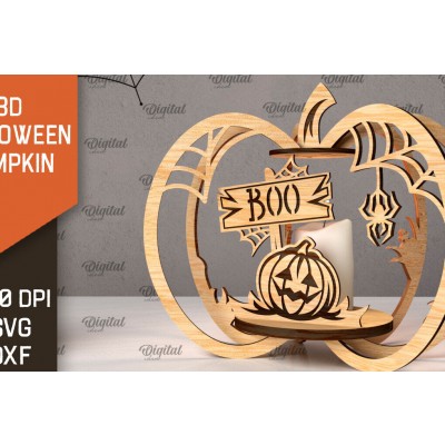 Σετ των 2 Intra απο ξύλο plywood 3mm-4mm πάχος Τρισδιάστατο σχέδιο αποκοπής λέιζερ κολοκύθας αποκριών Δίασταση 15x15 cm INTRAFABR-107013811