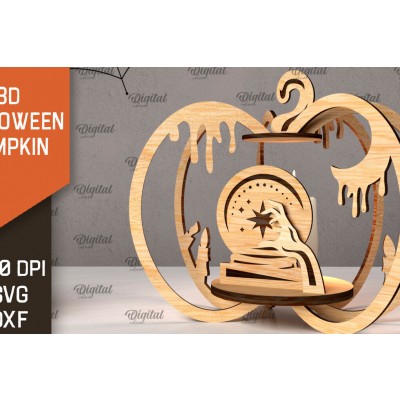 Σετ των 2 Intra απο ξύλο plywood 3mm-4mm πάχος Τρισδιάστατο σχέδιο αποκοπής λέιζερ κολοκύθας αποκριών Δίασταση 15x15 cm INTRAFABR-107014073