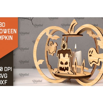 Σετ των 2 Intra απο ξύλο plywood 3mm-4mm πάχος Τρισδιάστατο σχέδιο αποκοπής λέιζερ κολοκύθας αποκριών Δίασταση 15x15 cm INTRAFABR-107014097