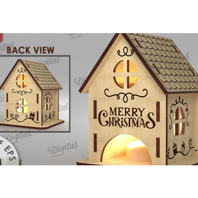 Όνομα Προϊόντος Σετ των 2 Intra απο ξύλο plywood 3mm-4mm πάχος Χριστουγεννιάτικο Σπίτι Κηροπήγιο Δίασταση 15x15 cm INTRAFABR-108506410