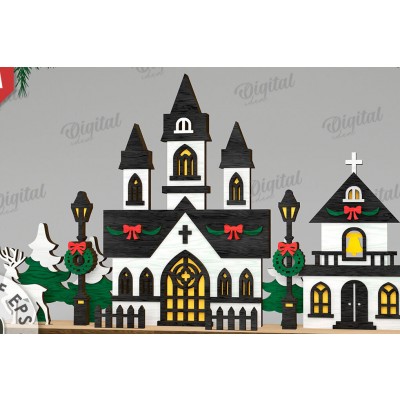 Σετ των 2 Intra απο ξύλο plywood 3mm-4mm πάχος Τρισδιάστατη χριστουγεννιάτικη εκκλησία κοπής με λέιζερ Δίασταση 15x15 cm INTRAFABR-109486491