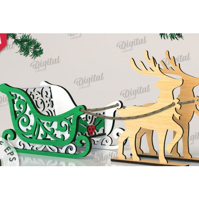 Όνομα Προϊόντος Σετ των 2 Intra απο ξύλο plywood 3mm-4mm πάχος Χριστουγεννιάτικο έλκηθρο με τάρανδος Δίασταση 15x15 cm INTRAFABR-109503613