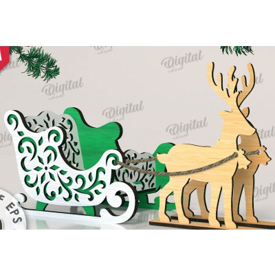 Όνομα Προϊόντος Σετ των 2 Intra απο ξύλο plywood 3mm-4mm πάχος Χριστουγεννιάτικο έλκηθρο με τάρανδος Δίασταση 15x15 cm INTRAFABR-109503808