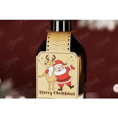 Σετ των 2 Intra απο ξύλο plywood 3mm-4mm πάχος - Χριστουγεννιάτικο μπουκάλι κρασιού Ετικέτα | Δώρο διακοπών Δίασταση 15x15 cm INTRAFABR-111361013