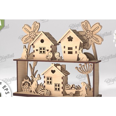 Σετ των 2 Intra απο ξύλο plywood 3mm-4mm πάχος Τρισδιάστατη πασχαλινή διακόσμηση με λέιζερ. Πασχαλινό περίπτερο Δίασταση 15x15 cm INTRAFABR-115232770
