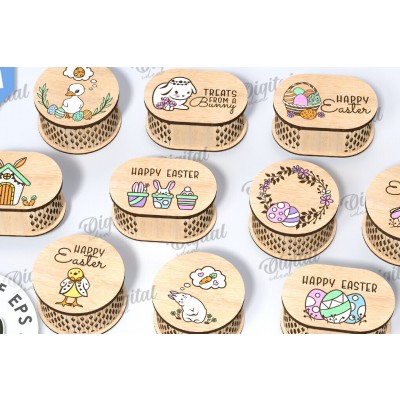 Κουτιά πασχαλινών λιχουδιών Πακέτο κοπής με λέιζερ Πρόκειται για ψηφιακό σχεδίου, ιδανικό για κοπή με ή plotter. Κατασκευασμένο απο Ξύλο από plywood [3mm ή 4mm], κομμένο με ακρίβεια στην βιοτεχνία Intrahome . Το φυσικό ξύλο προσφέρει μια κομψή, αυθεντική υφή και μπορεί εύκολα να βαφτεί ή να διακοσμηθεί σύμφωνα με το προσωπικό σας γούστο. Ελληνική παραγωγή – Κατασκευάζεται στην Ελλάδα με προσοχή στη λεπτομέρεια και υψηλές προδιαγραφές ποιότητας. ✔️ Υλικό: Plywood υψηλής ποιότητας ✔️ Διατίθεται σε πάχος 3mm ή 4mm ✔️ Ελαφρύ, ανθεκτικό και εύκολο στη χρήση ✔️ Ιδανικό για βάψιμο, χάραξη, κόλληση και χειροτεχνίες ✔️ Κατάλληλο για μπομπονιέρες, διακόσμηση, δώρα και DIY projects ✅ Εγγύηση 2 ετών – Σε περίπτωση σπασίματος, η αντικατάσταση γίνεται άμεσα, χάρη στην τοπική ελληνική παραγωγή μας. Ιδανικό για δημιουργικούς ανθρώπους που αγαπούν το DIY. Μπορεί να γίνει ξεχωριστό δώρο με προσωπικό χαρακτήρα. Φέρνει “χειροποίητη” αισθητική στη διακόσμηση. -files- Ελληνική χειροποίητη παρα