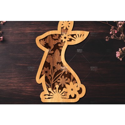 Σετ των 2 Intra απο ξύλο plywood 3mm-4mm πάχος Τρισδιάστατη Πασχαλινό λαγουδάκι Δίασταση 15x15 cm INTRAFABR-116455720