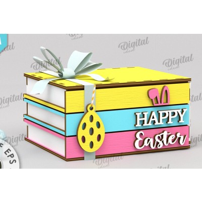 Σετ των 2 Intra απο ξύλο plywood 3mm-4mm πάχος Τρισδιάστατο πασχαλινό κουτί με λέιζερ. Στοιβαγμένα βιβλία Δίασταση 15x15 cm INTRAFABR-116495348