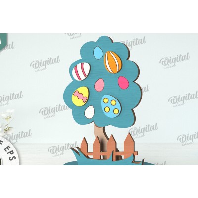 Σετ των 2 Intra απο ξύλο plywood 3mm-4mm πάχος Τρισδιάστατη πασχαλινό δέντρο. Πασχαλινό περίπτερο Δίασταση 15x15 cm INTRAFABR-118276516
