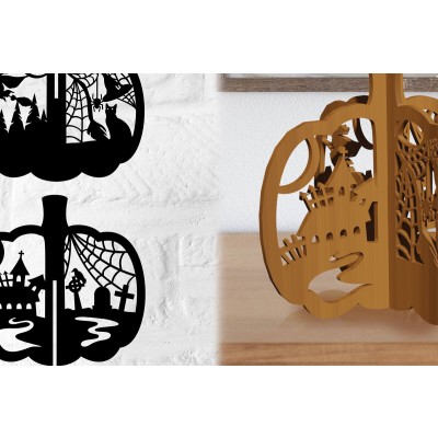 Όνομα Προϊόντος Σετ των 2 Intra απο ξύλο plywood 3mm-4mm πάχος Τρισδιάστατη κολοκύθας Δίασταση 15x15 cm INTRAFABR-79137401