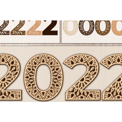 Σετ των 2 Intra απο ξύλο plywood 3mm-4mm πάχος Πρωτοχρονιάτικο κομμένο 2022 Δίασταση 15x15 cm INTRAFABR-21931822