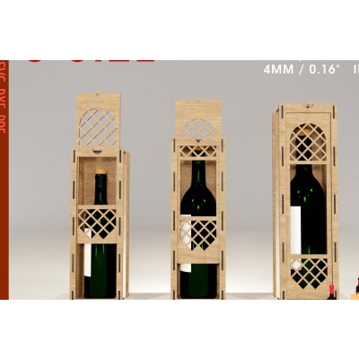 Σετ των 2 Intra απο ξύλο plywood 3mm-4mm πάχος – Κουτί κρασιού με συρόμενο καπάκι κομμένο αρχείο λέιζερ Δίασταση 20x20 cm INTRAFABR-104824014