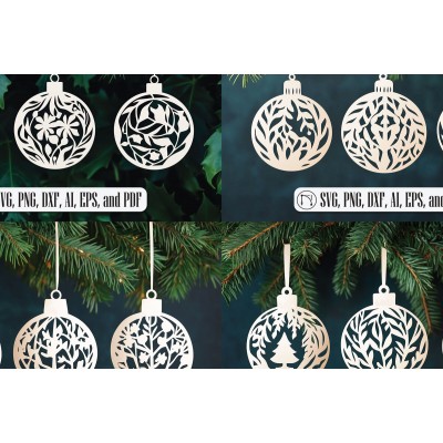 Σετ των 2 Intra απο ξύλο plywood 3mm-4mm πάχος – Πακέτο Χριστουγεννιάτικων Μπάλες σε χαρτοκόπτη Δίασταση 20x20 cm INTRAFABR-105873784