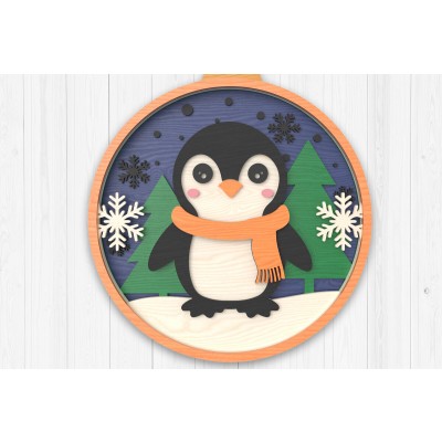 Σετ των 2 Intra απο ξύλο plywood 3mm-4mm πάχος – Πιγκουίνος Χειμερινό στολίδι με λέιζερ Δίασταση 20x20 cm INTRAFABR-106511472