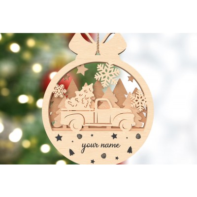 Σετ των 2 Intra απο ξύλο plywood 3mm-4mm πάχος – Προσωποποιημένο Χριστουγεννιάτικο Στολίδι Φορτηγού Δίασταση 20x20 cm INTRAFABR-106720535