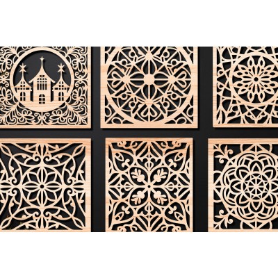 Σετ των 2 Intra απο ξύλο plywood 3mm-4mm πάχος – Σχεδιασμός σουβέρ κοπής με λέιζερ ξύλου Δίασταση 20x20 cm INTRAFABR-108320617