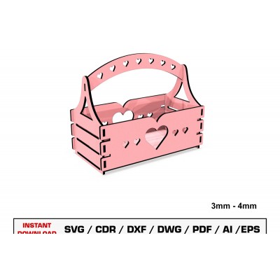 Καλάθι δώρου κοπής με λέιζερ Πρόκειται για ψηφιακό σχεδίου, ιδανικό για κοπή με ή plotter. Κατασκευασμένο απο Ξύλο από plywood [3mm ή 4mm], κομμένο με ακρίβεια στην βιοτεχνία Intrahome . Το φυσικό ξύλο προσφέρει μια κομψή, αυθεντική υφή και μπορεί εύκολα να βαφτεί ή να διακοσμηθεί σύμφωνα με το προσωπικό σας γούστο. Ελληνική παραγωγή – Κατασκευάζεται στην Ελλάδα με προσοχή στη λεπτομέρεια και υψηλές προδιαγραφές ποιότητας. ✔️ Υλικό: Plywood υψηλής ποιότητας ✔️ Διατίθεται σε πάχος 3mm ή 4mm ✔️ Ελαφρύ, ανθεκτικό και εύκολο στη χρήση ✔️ Ιδανικό για βάψιμο, χάραξη, κόλληση και χειροτεχνίες ✔️ Κατάλληλο για μπομπονιέρες, διακόσμηση, δώρα και DIY projects ✅ Εγγύηση 2 ετών – Σε περίπτωση σπασίματος, η αντικατάσταση γίνεται άμεσα, χάρη στην τοπική ελληνική παραγωγή μας. Ιδανικό για δημιουργικούς ανθρώπους που αγαπούν το DIY. Μπορεί να γίνει ξεχωριστό δώρο με προσωπικό χαρακτήρα. Φέρνει “χειροποίητη” αισθητική στη διακόσμηση. -files- Ελληνική χειροποίητη παραγωγή → στηρίζετε τοπι