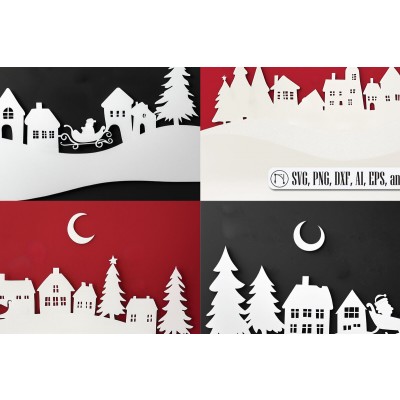 Όνομα Προϊόντος Σετ των 2 Intra απο ξύλο plywood 3mm-4mm πάχος – Πακέτο χριστουγεννιάτικου χωριού σε χαρτοκόπτη Δίασταση 20x20 cm INTRAFABR-111806754