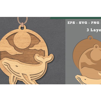 Σετ των 2 Intra απο ξύλο plywood 3mm-4mm πάχος – Στολίδι με λέιζερ φάλαινας Δίασταση 20x20 cm INTRAFABR-112070146