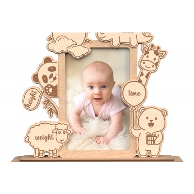 Σετ των 2 Intra απο ξύλο plywood 3mm-4mm πάχος – Εξατομικευμένη κορνίζα για μωρό ζώου Δίασταση 20x20 cm INTRAFABR-116659438