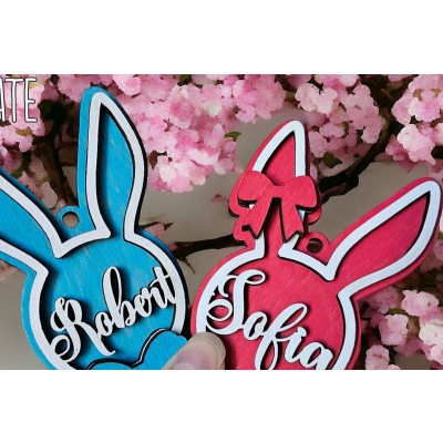 Όνομα Προϊόντος Σετ των 2 Intra απο ξύλο plywood 3mm-4mm πάχος – Εξατομικευμένη ετικέτα ονόματος Πάσχα λαγουδάκι Δίασταση 20x20 cm INTRAFABR-116833862