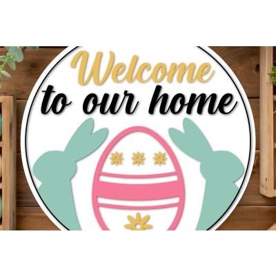 Όνομα Προϊόντος Σετ των 2 Intra απο ξύλο plywood 3mm-4mm πάχος – Καλωσορίσατε στο Σπίτι Μας Πασχαλινή Στρογγυλή Πινακίδα Δίασταση 20x20 cm INTRAFABR-118338116