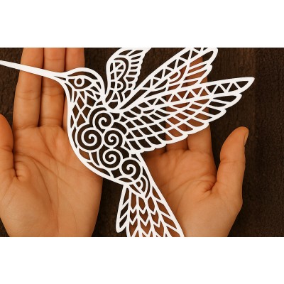 Σετ των 2 Intra απο ξύλο plywood 3mm-4mm πάχος – Κοπή χαρτιού Κολίβριο Δίασταση 20x20 cm INTRAFABR-119817488