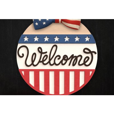 Όνομα Προϊόντος Σετ των 2 Intra απο ξύλο plywood 3mm-4mm πάχος – Στρογγυλό σημάδι καλωσορίσματος πατριωτικού τόξου Δίασταση 20x20 cm INTRAFABR-122314636