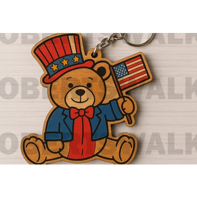 Όνομα Προϊόντος Σετ των 2 Intra απο ξύλο plywood 3mm-4mm πάχος – Πατριωτική αρκούδα με σημαία Δίασταση 20x20 cm INTRAFABR-122601740