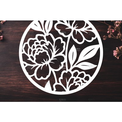 Όνομα Προϊόντος Σετ των 2 Intra απο ξύλο plywood 3mm-4mm πάχος – Χαρτί κομμένο στρογγυλό σημάδι παιώνιας λουλουδιών Δίασταση 20x20 cm INTRAFABR-122603657