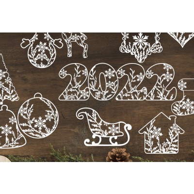 Σετ των 2 Intra απο ξύλο plywood 3mm-4mm πάχος – Αρχεία κομμένων χειμερινών Χριστουγέννων Δίασταση 20x20 cm INTRAFABR-15358296