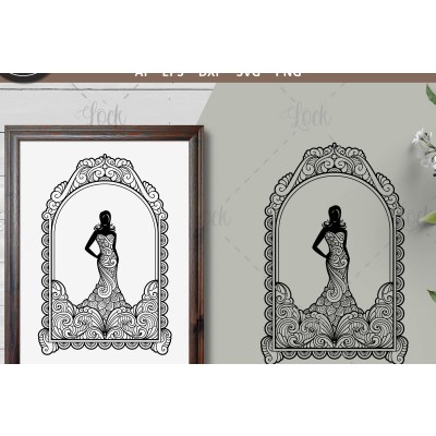 Όνομα Προϊόντος Σετ των 2 Intra απο ξύλο plywood 3mm-4mm πάχος – Γυναίκα με φόρεμα, νυφικό Δίασταση 20x20 cm INTRAFABR-18022386