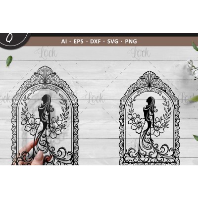 Όνομα Προϊόντος Σετ των 2 Intra απο ξύλο plywood 3mm-4mm πάχος – Γυναίκα με φόρεμα, νυφικό Δίασταση 20x20 cm INTRAFABR-18022395