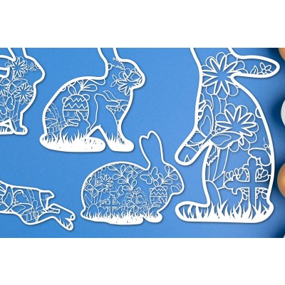 Σετ των 2 Intra απο ξύλο plywood 3mm-4mm πάχος – Πακέτο λουλουδιών πασχαλινό λαγουδάκι κομμένο χαρτί Δίασταση 20x20 cm INTRAFABR-25849035