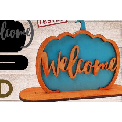 Σετ των 2 Intra απο ξύλο plywood 3mm-4mm πάχος – Σημάδι καλωσορίσματος, κοπής λέιζερ κολοκύθας Δίασταση 20x20 cm INTRAFABR-34579405