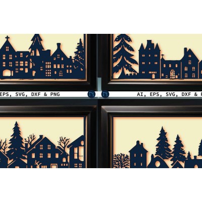 Σετ των 2 Intra απο ξύλο plywood 3mm-4mm πάχος – Πακέτο Χριστουγεννιάτικου Σπίτι κομμένο χαρτί Δίασταση 20x20 cm INTRAFABR-80422565