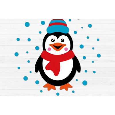 Σετ των 2 Intra απο ξύλο plywood 3mm-4mm πάχος – Χειμερινός πιγκουίνος με καπέλο και κασκόλ Δίασταση 20x20 cm INTRAFABR-80472779