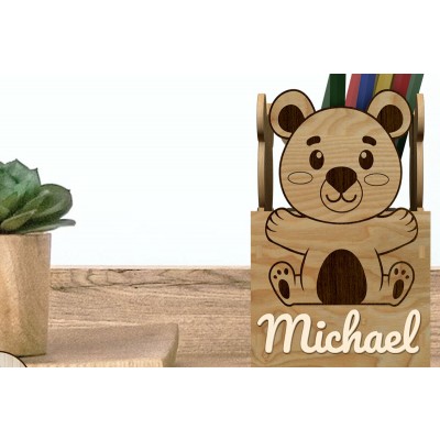 Σετ των 2 Intra απο ξύλο plywood 3mm-4mm πάχος – Μολυβοθήκη αρκουδάκι, Δίασταση 20x20 cm INTRAFABR-87769695